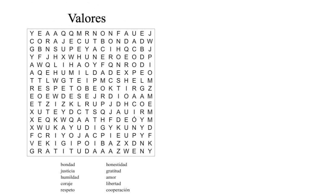 F.C.É: Resolver la sopa de letras de Valores, no olvides colorar fecha completa.